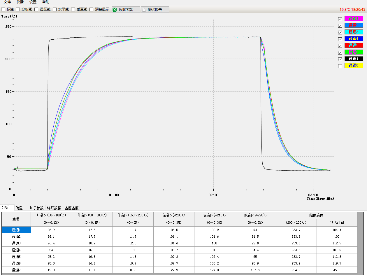 12、曲線上可任意設(shè)定橫線標(biāo)注,更加直觀顯示某個(gè)溫度點(diǎn)的各個(gè)曲線時(shí)間狀